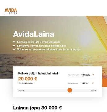 Uusi Avida Finans Laina on 2000 – 30.000 euron kulutusluotto, jonka saat haettua sähköisesti verkossa!